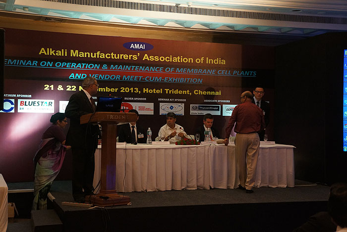 ????????由印度堿制造商協(xié)會(huì)AMAI舉辦的“離子膜電解槽運(yùn)行與維護(hù)(Operation & Maintenance of Membrane Cell Plants)”展會(huì)及研討會(huì)于2013年11月22日在印度南部最大的城市Chennai順利閉幕,我司的參展取得了熱烈的反響。