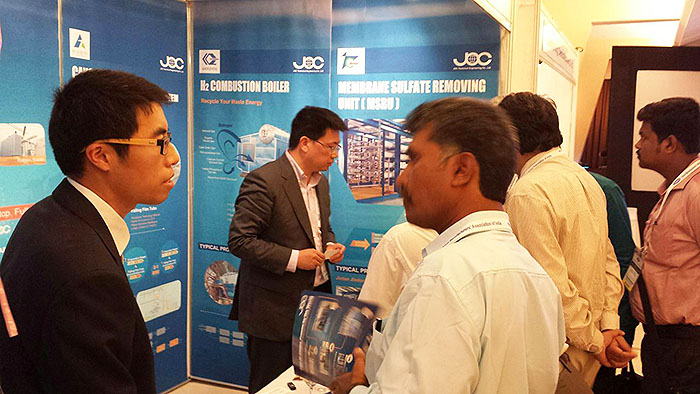 ????????作為人口大國,印度的基礎(chǔ)化工燒堿工業(yè)卻只有中國的十分之一,是印度未來具有潛力化工市場。近年來,印度燒堿行業(yè)需求明顯,技術(shù)發(fā)展、設(shè)備制造等與印度國內(nèi)外的聯(lián)系日益頻繁。本次由AMAI舉辦的展會,我司已經(jīng)是多次參展,公司近幾年在印度氯堿行業(yè)中從起初的近四十套整流系統(tǒng),逐漸擴(kuò)展到現(xiàn)在的從陶瓷膜鹽水精制、離子膜電解槽、納濾膜鹽水除硝系統(tǒng)和固堿蒸發(fā)及濃縮裝置等多套系統(tǒng)紛紛在印度、泰國、法國、比利時、俄羅斯、中東等地成功開車投運(yùn),JOC的品牌已在印度國內(nèi)具有相當(dāng)高的知名度,很多客戶慕名而來,現(xiàn)場和我司進(jìn)行了很多商務(wù)及技術(shù)上的討論。