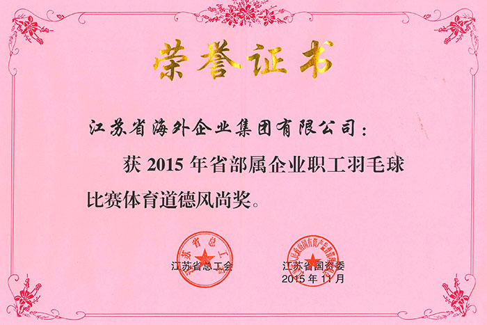 ????????我司龔堅(jiān)、周兵、王光毅、黃鏡清代表江蘇省海外企業(yè)集團(tuán)參加了男子單打項(xiàng)目的角逐。本次比賽旨在加強(qiáng)企業(yè)文化和職工文化建設(shè),提高職工健康水平,我司參賽選手秉承頑強(qiáng)拼搏、力爭(zhēng)上游、團(tuán)結(jié)互助的比賽精神,在賽場(chǎng)上不畏強(qiáng)敵,揮汗如雨,奮勇?tīng)?zhēng)先。他們矯健的身影,激烈的對(duì)抗,流著汗水的表情成了羽毛球館內(nèi)一道靚麗的風(fēng)景線。經(jīng)過(guò)兩天緊張激烈的比賽,我司隊(duì)員獲得了賽會(huì)頒發(fā)的體育道德風(fēng)尚獎(jiǎng),賽出了風(fēng)格、賽出了自我、賽出了友誼。