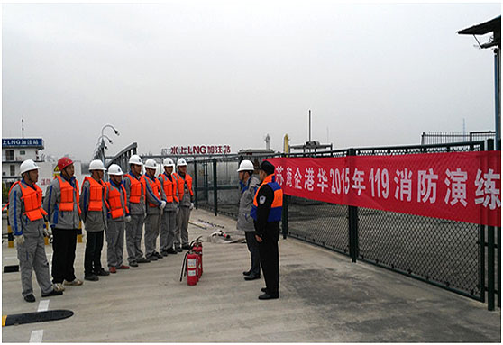 ????????為提高全員消防意識,增強(qiáng)員工在緊急情況下的應(yīng)變能力,自我防護(hù)能力,海企港華2015年119消防綜合演練于11月12日上午9點30分在LNG水上加注站舉行,并邀請到長航消防公安支隊朱所長和八卦洲街道安監(jiān)科陳科長等到場觀摩和指導(dǎo)。
