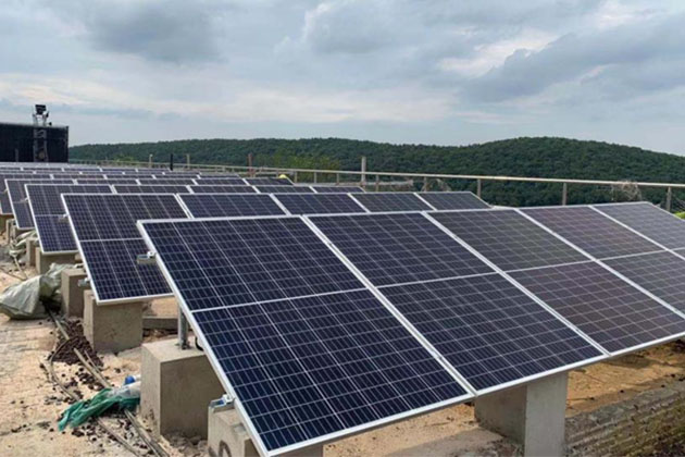 ????????區(qū)塊內(nèi)的重點(diǎn)項(xiàng)目——未來(lái)花園悅榕莊酒店,坐落在崖壁劇院的東側(cè),是一個(gè)以舒適、豪華以及低碳環(huán)保為主要設(shè)計(jì)思路的高奢酒店品牌,其位于山腰上的酒店頂層平臺(tái)被充分利用,敷設(shè)光伏系統(tǒng),為整個(gè)酒店的空調(diào)和泛光照明提供電能。