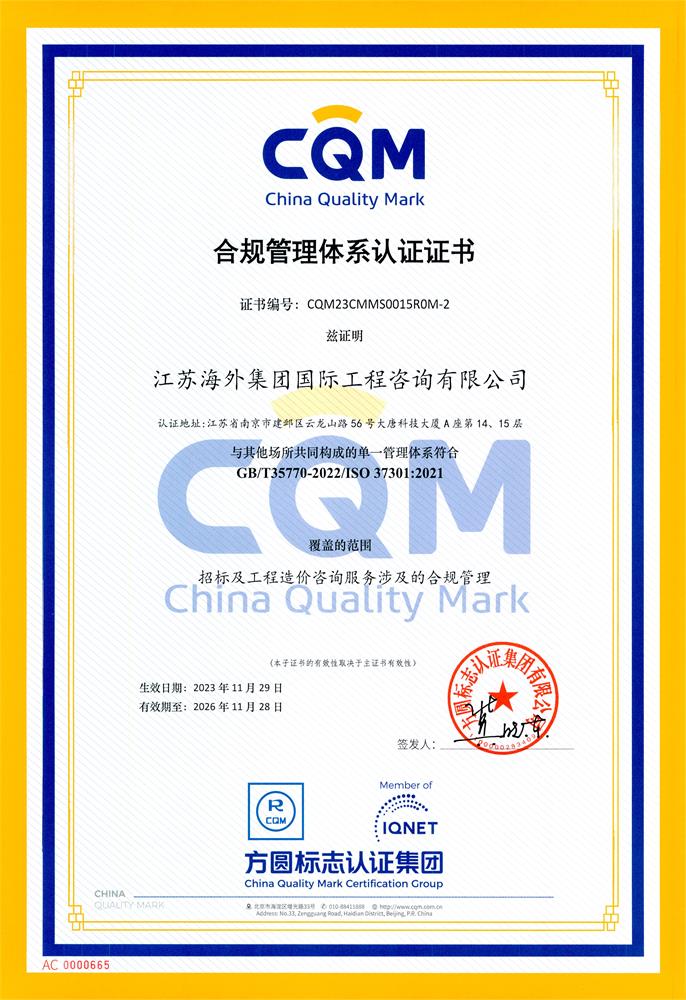 合規(guī)管理體系認(rèn)證證書
